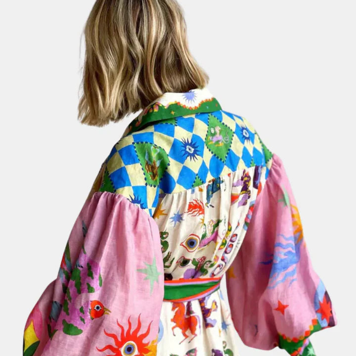 This brightly coloured Delphina Italian dress is perfect to wear on that one beautiful spring day. This beautiful maxi dress is artistically designed and made with the best quality materials, creating a beautiful aesthetic that will last. Wearing this dress will boost your confidence and make you shine all day long. A flowing fabric and premium materials ensure that you can wear this dress perfectly during the warmer days. This Italian dress should not be missing and your wardrobe!